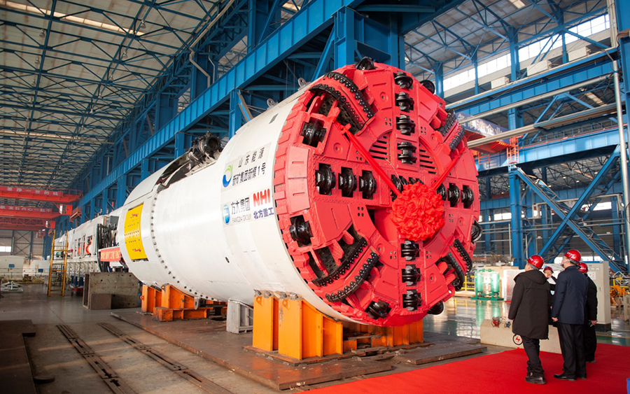 在結構件分廠,弧光閃爍,焊花飛濺,工人師傅們切割下料、組對焊接,忙個不停。在隧道掘進裝備分廠,臺州項目盾構機管片安裝機正在緊張調試中,即將發貨。重大部件分廠機加車間廠房內機聲隆隆,天車在空中往來穿梭。工人師傅們在機床前或聚精會神加工工件,或一絲不茍裝夾工件,找正、對刀,緊張而有序。